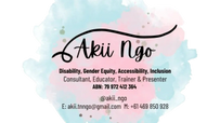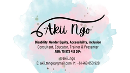 Akii's expertise and subject mater expertise involves many topics - including but not limited to: disability inclusion, trauma-informed violence prevention, gender equity, equality, mental health and wellbeing, neurodivergence, anti-racism, social justice, disability justice, accessibility (online , digital & physical), LGBTIQA+ rights, Diversity, Equity, Inclusion & Belonging (DEIB), marketing, communications and coporate social responsibility.